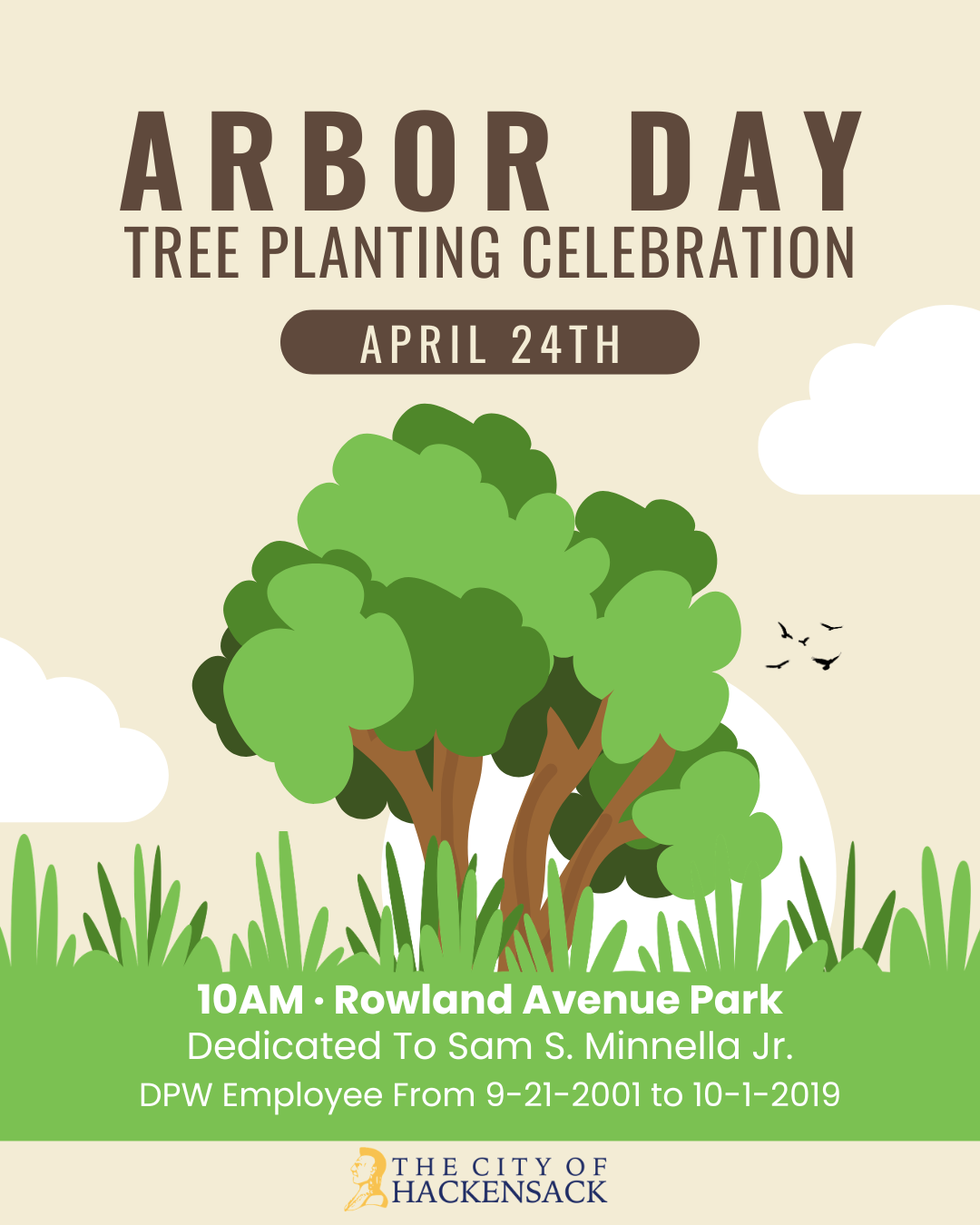 Join us for an Arbor Day Tree Planting Celebration on April 24th at 10:00 AM at Rowland Avenue Park. This special event is dedicated to former DPW employee, Sam S. Minnella Jr.