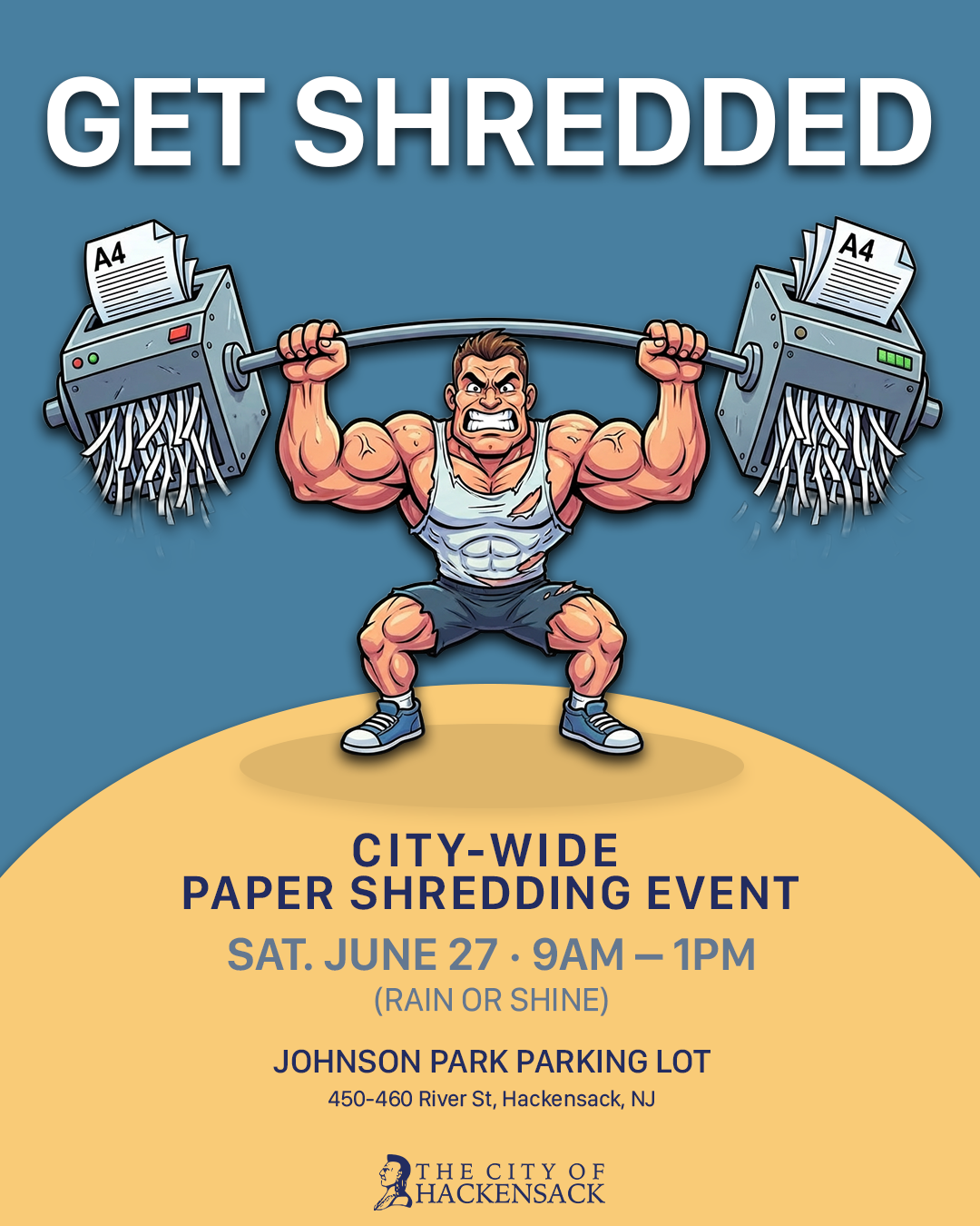 Protect your personal information and declutter at Hackensack’s City-Wide Paper Shredding Event. Join us Saturday, June 27, from 9AM – 1PM (rain or shine) at the Johnson Park Parking Lot. Bring your confidential documents for safe, secure shredding and leave with peace of mind.