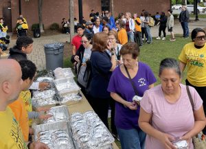 The day kicked off with breakfast from local Main Street favorites Iconic Coffee and BEC, fueling volunteers with coffee and bagels before they fanned out across the city to clean up parks and public areas. After a productive morning, participants returned to the park for a well-deserved lunch provided by beloved local eatery Choripan. Just as the food was being served, rain began to fall — but not before the cleanup was complete.