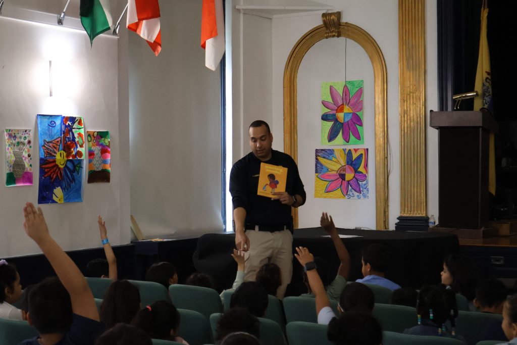 On Friday, April 25th, in celebration of Arbor Day, Hackensack Clean Communities Co-Coordinator Frank Borrelli joined LEAD ambassadors Lt. Anthony DiPersia, Sgt. Luis Dominguez, and Det. Felix Katsaroans to visit every second-grade classroom across Hackensack. Their mission: to share the inspiring message of Amanda Gorman’s children’s book, Something Someday.
