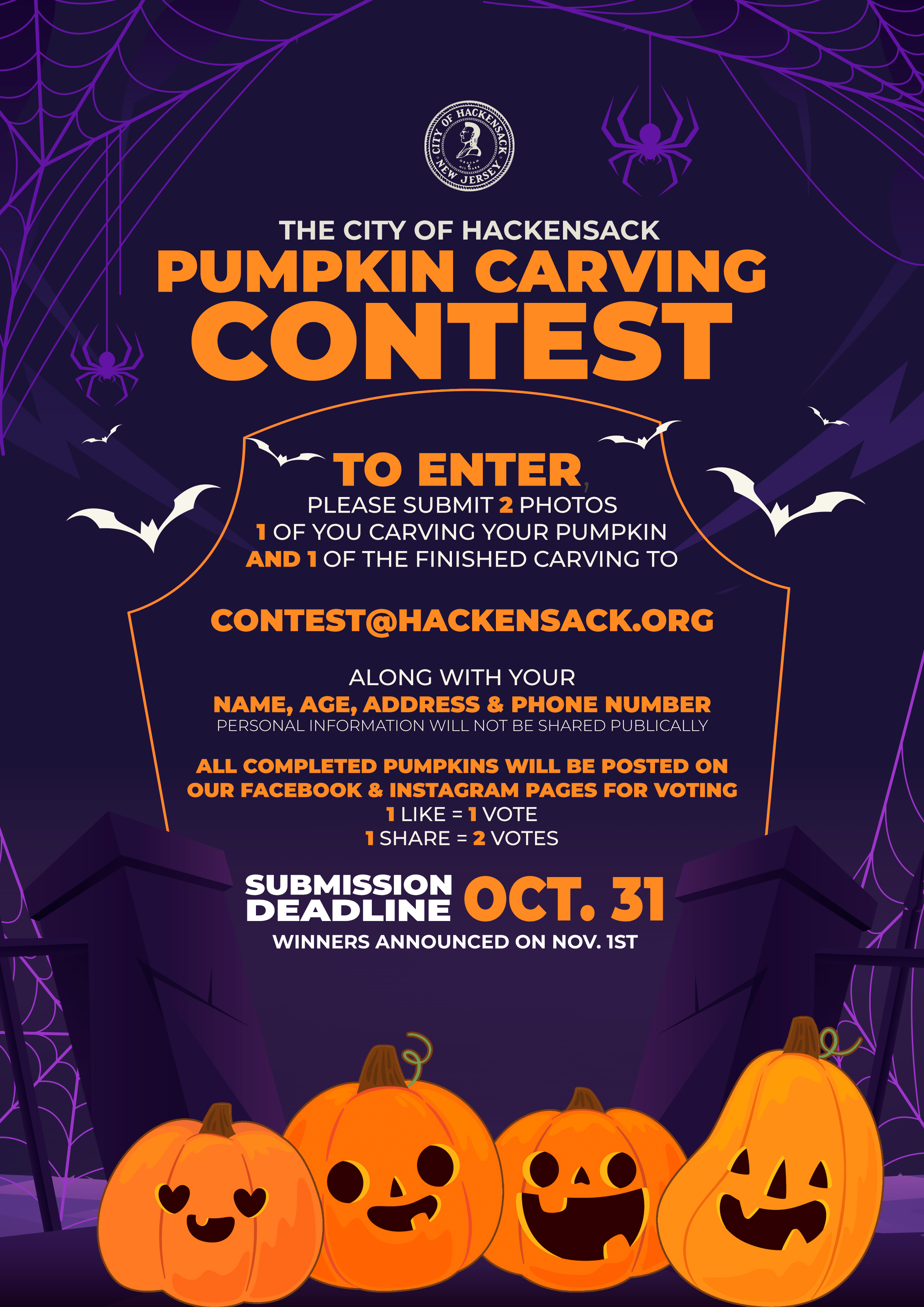 Participants are required to submit two photographs: one capturing the participant in the process of carving their pumpkin, and one of the finished carved pumpkin. Submissions should be emailed to contest@hackensack.org and must include the participant’s name, age, address, and phone number. Please be assured that personal information will be kept confidential and will not be shared publicly.