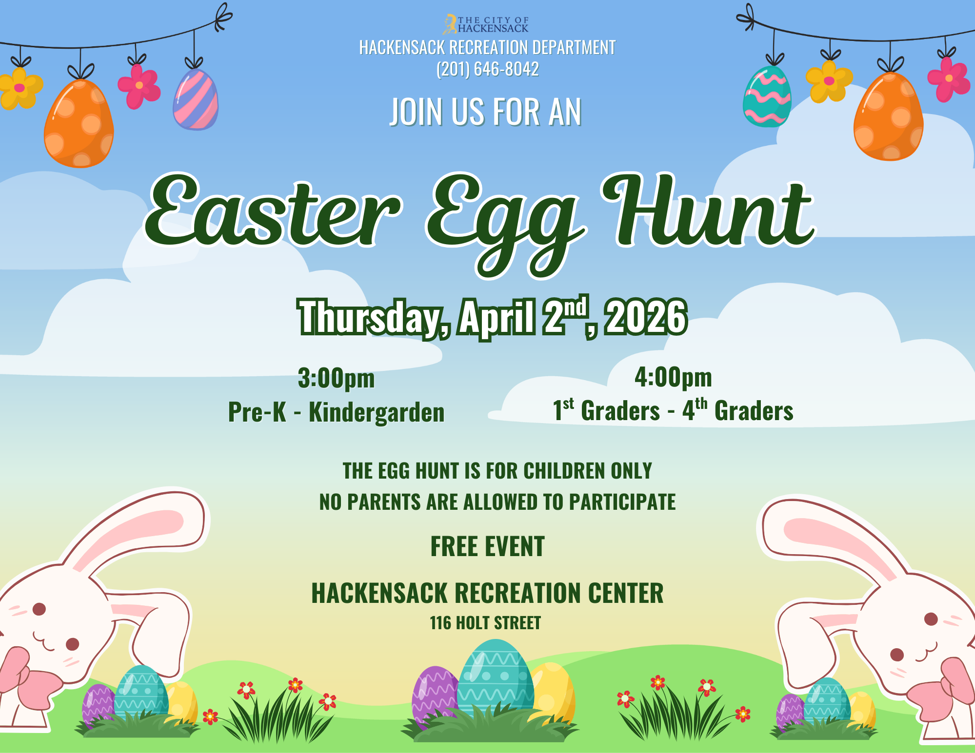 This year’s hunt will be held at the Hackensack Recreation Center, not Johnson Park as it has been in previous years.